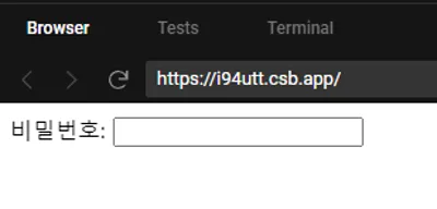 비밀번호를 입력받는 필드입니다. 입력한 문자가 마스킹되어(*****) 표시됩니다.