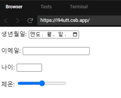 앞서 소개한 요소들 이 외에도 날짜(type="date"), 이메일(type="email"), 숫자(type="number"), 범위(type="range") 등의 다양한 타입이 있습니다.